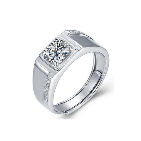Pass the Diamond Tester 1ct Round Cut Resizable 925 Solid Moissanite Mens Ring in Vogue Resizable Moissanite Ring