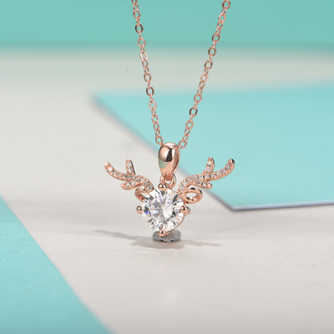 925 Silber Mossanite Mode Anhänger Halskette Grace Certified Moissan ite Schmuck Hirschgeweih Form Überzug Gold Halskette