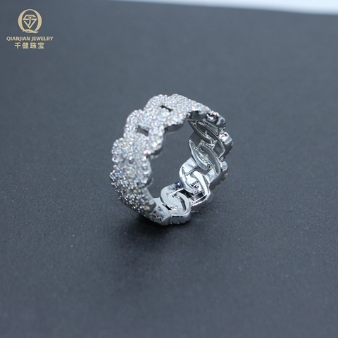 Qianjianファクトリーヒップホップスタイルアイスアウトローリング925スターリングシルバー金メッキモアッサナイトダイヤモンド10mmリング高速配送