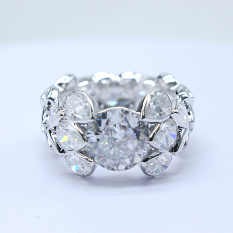 फैशन डिजाइन प्रपोंग 925 चांदी के मोइससानाइट प्रतीक रिंग सफेद डीएफ वी बनाम गोल आकार मोइससानाइट रिंग