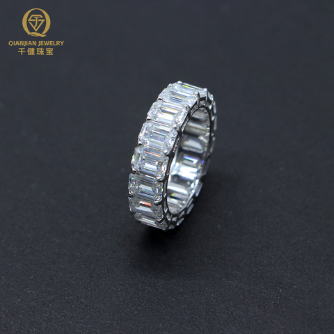 उच्च गुणवत्ता 925 चांदी मोइससानाइट रिंग सफेद डीएफ वी बनाम मेराल्ड आकार रैट्स प्रांग हिप हॉप शैली उच्च लस्टर मोइससानाइट